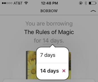 - Choose between checking out the item for 7 or 14, then, select “Borrow!”