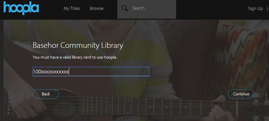 Click Continue.Choose Basehor Community Library or search for it in the space provided.Click Continue. - Enter your library card number and, click Continue.