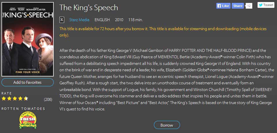 hoopla is a FREE digital media service that you can use to borrow a great selection of ebooks, audiobooks, movies, television shows, documentaries, full music albums, and comic books using your smartphones, tablets, and your computer. It’s easy to sign up, and to use. Best of all: there’s no waiting and no holds!